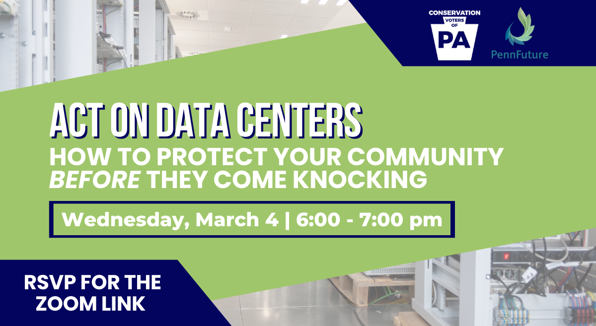 Join us as we show you how you can engage with decision makers and prepare in advance to proactively protect your community and environment. We’ll also cover a few state-level actions that you can take to help reduce the impacts of data center development in PA. At the end our panelists will answer any lingering questions so come prepared or submit your question prior to joining.